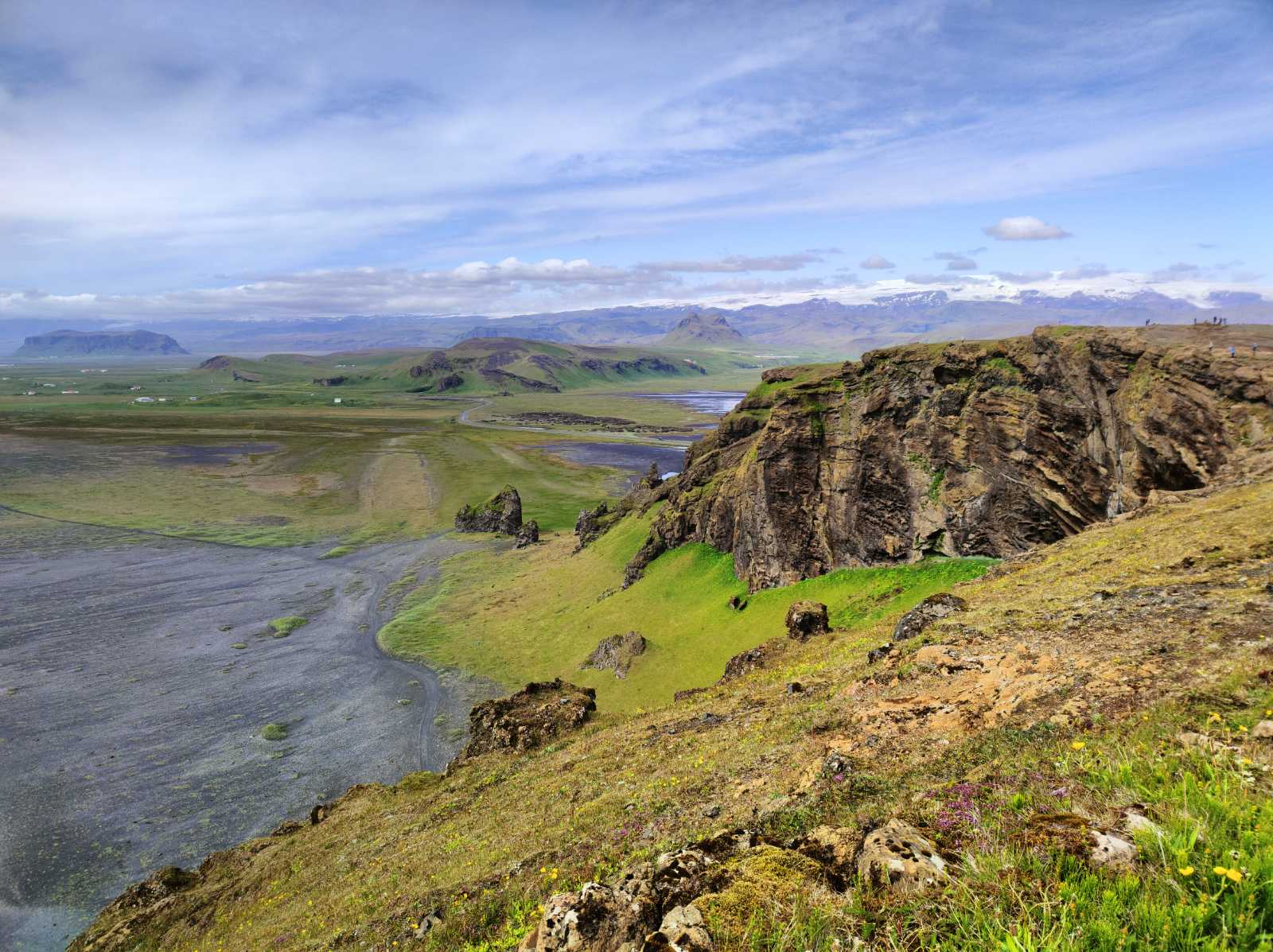 Η πρώτη μας στάση θα γίνει στο γραφικό φαράγγι Fjaðrárgljúfur. Έχει μήκος 2 χλμ και βάθος 100 μέτρα, και τον διαρρέει ο ποταμός Fjaðrá. Κάποιοι πιστεύουν ότι το φαράγγι ξεκίνησε να σμιλεύεται πριν από 9.000 χρόνια! Και φτάνουμε στο όμορφο ψαροχώρι VIK. Το Vik ψηφίστηκε το 1991 ως μία από τις 10 ομορφότερες παραλίες στον κόσμο. Η άμμος της είναι μαύρη από την ανάμειξη με τον βασάλτη που είναι άφθονος στην περιοχή, για αυτό και ονομάζεται μαύρη παραλία (Black Sand Beach).